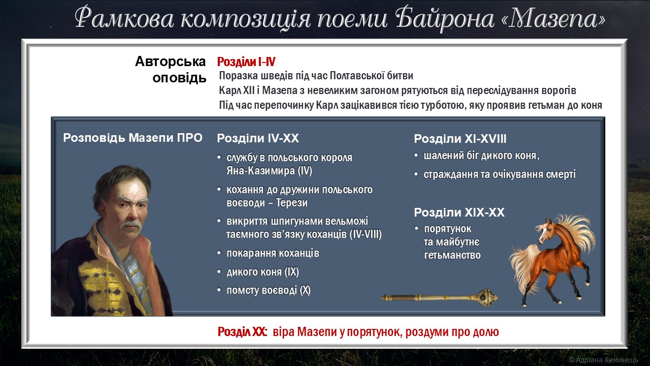 Таблиця "Композиція поеми Дж.Г.Байрона "Мазепа""